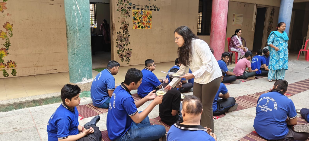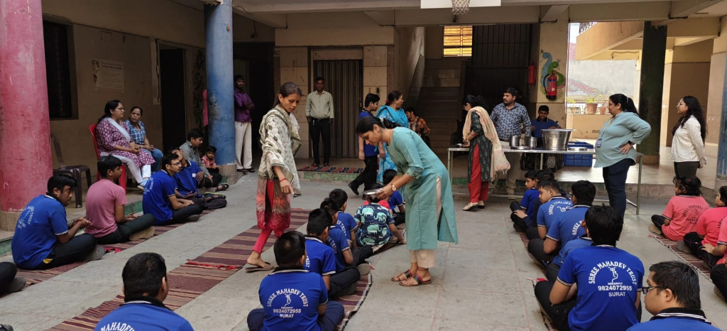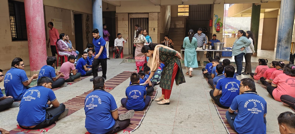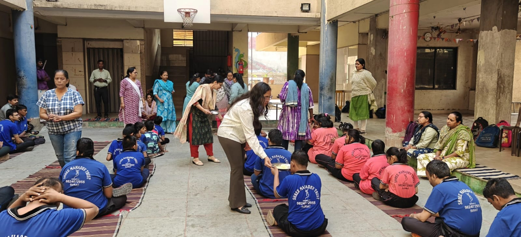 Distribution of Healthy Snacks To Specially Abled Children, Shri Mahadev Trust, Surat.